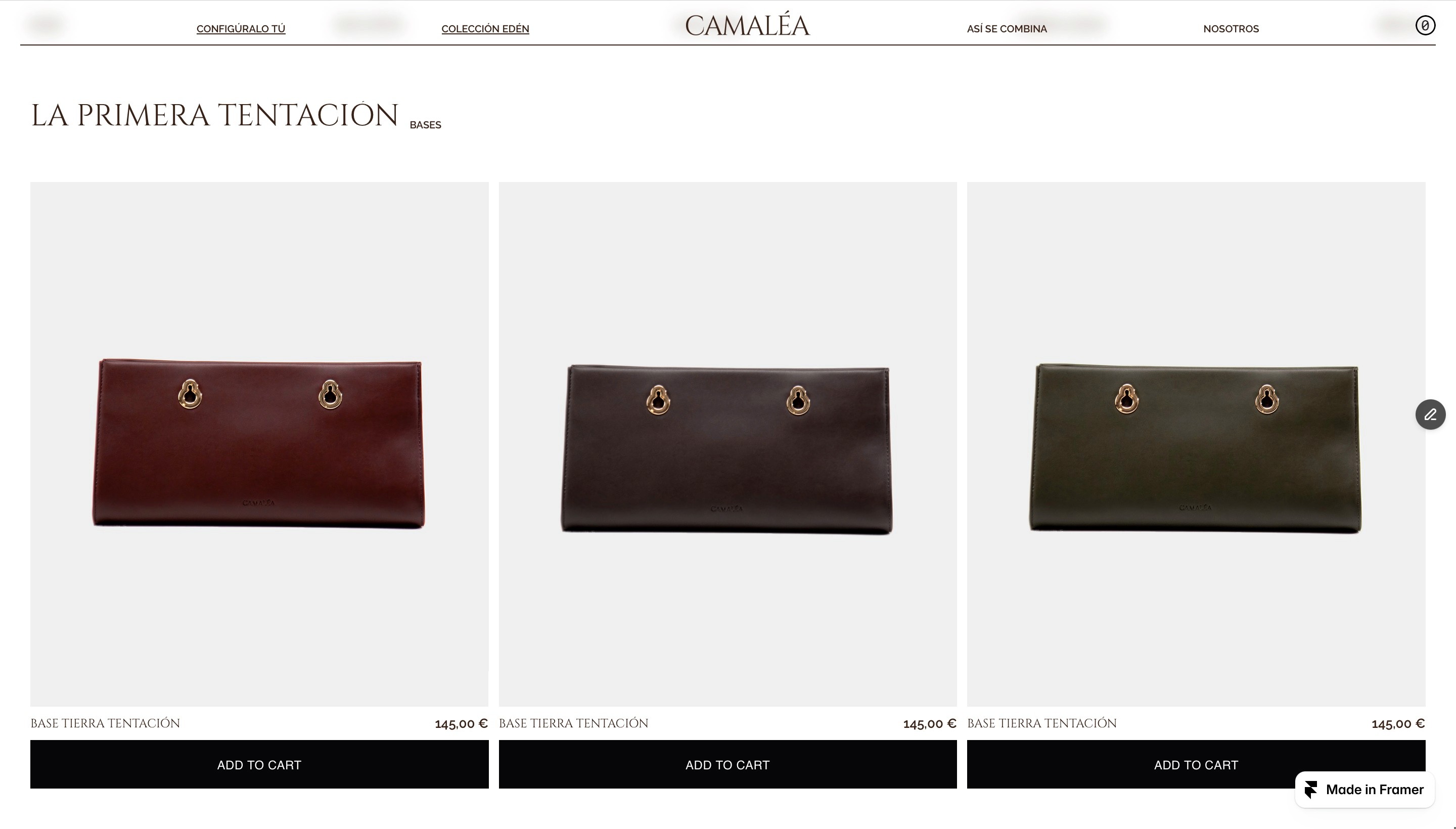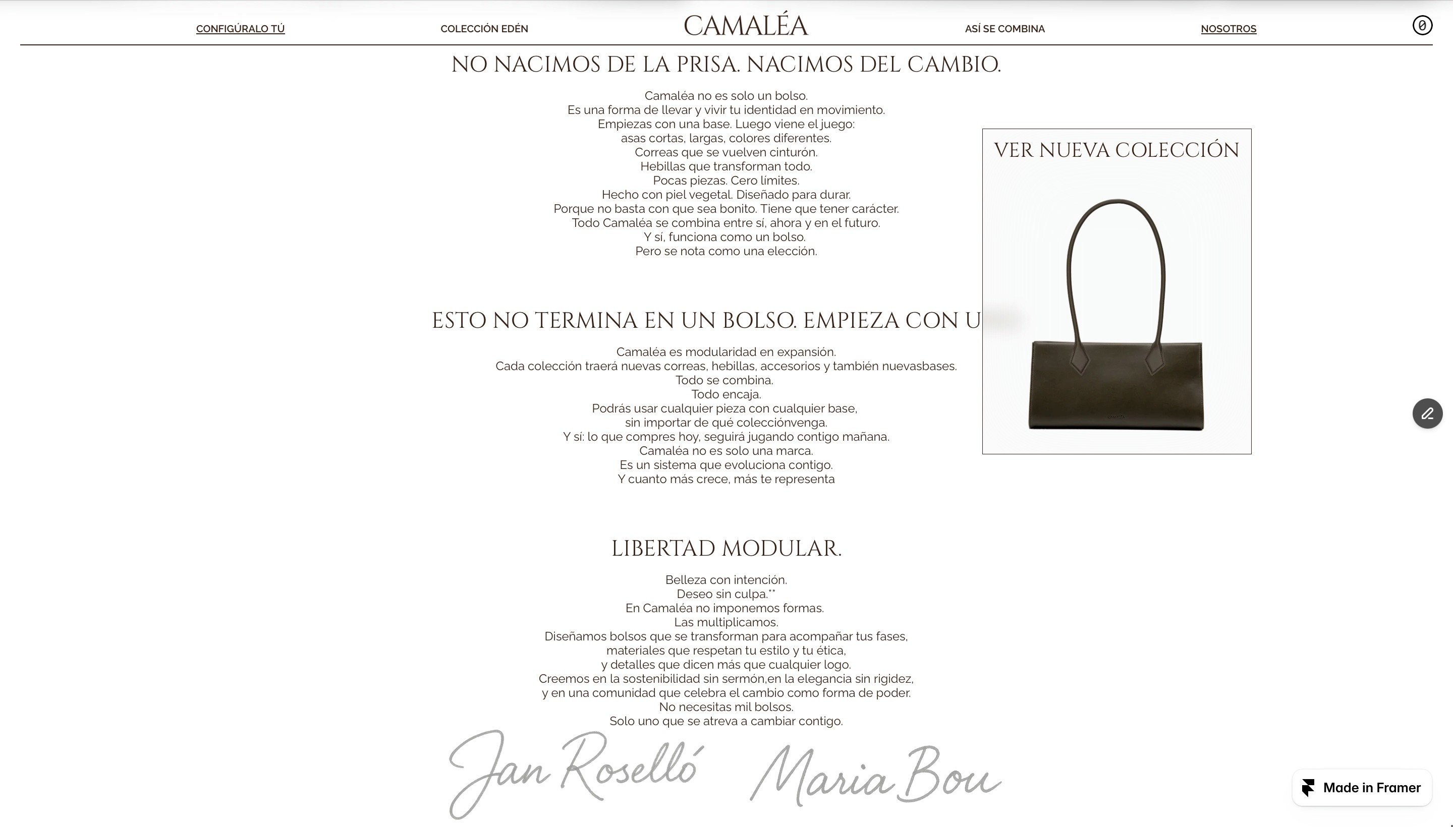 The Camalea team came to us pre-launch of their Vegan Leather (apple peel) modular bags looking for a modern, sleek e-commerce site. We designed the site in figma, developed in framer and used Shopify commerce software for easy client handling, this site includes a lot of low opacity blurry detail sections.