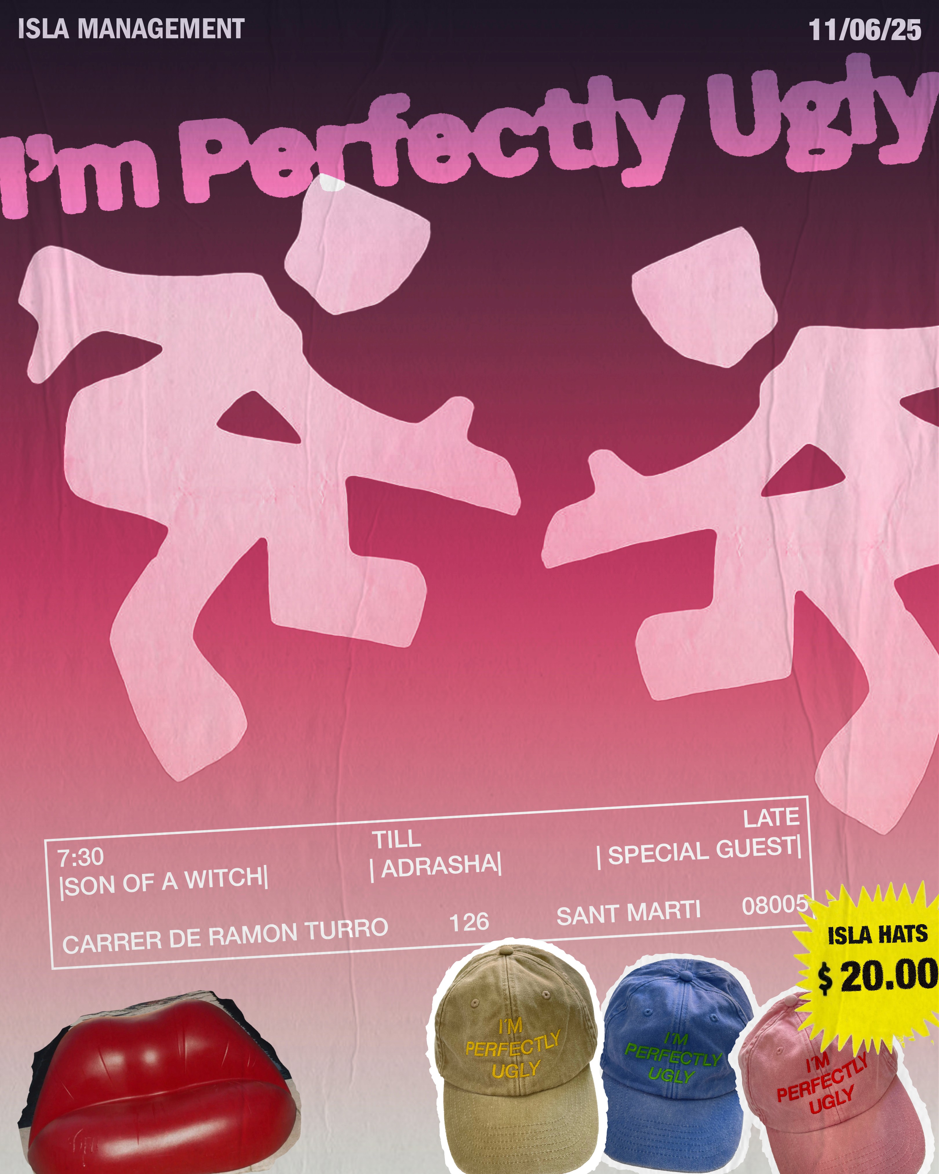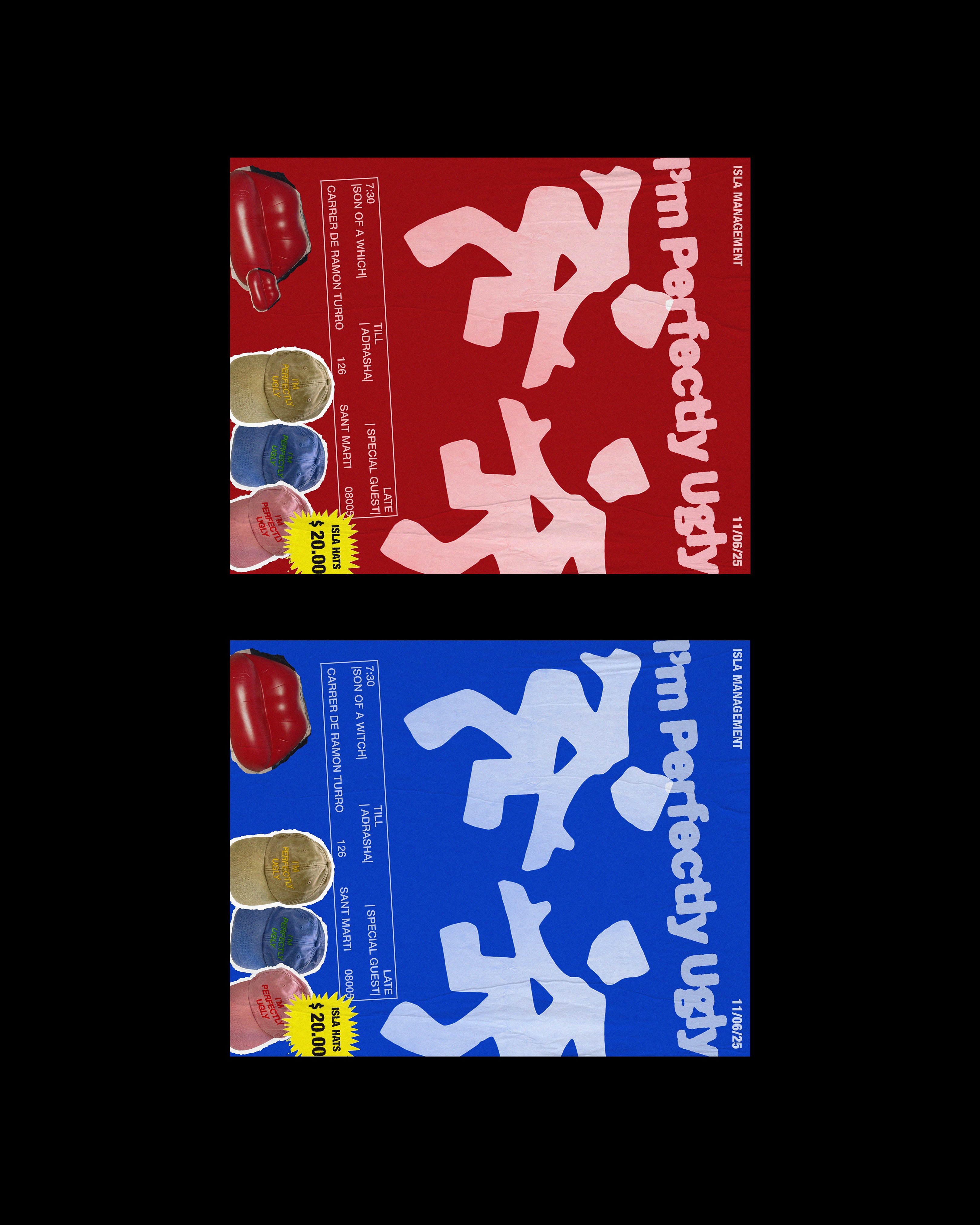 Isla Management, one of Barcelona's top modelling agencies, got in touch with me to design their event posters and email invitations for their 4th anniversary and to promote their new merch "I'm perfectly ugly" hats. I designed these groovy graphics for them.